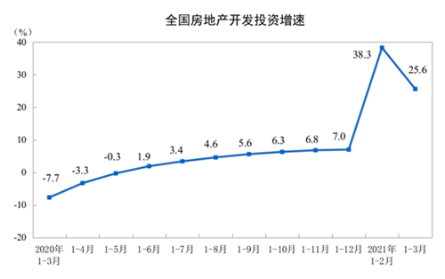 1—3月份,全國房地產(chǎn)開發(fā)投資27576億元,同比增長25.6%;比2019年1—3月份增長15.9%,兩年平均增長7.6%。其中,住宅投資20624億元,增長28.8%。
