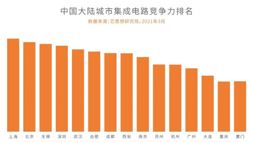 中國(guó)大陸城市集成電路競(jìng)爭(zhēng)力排名
