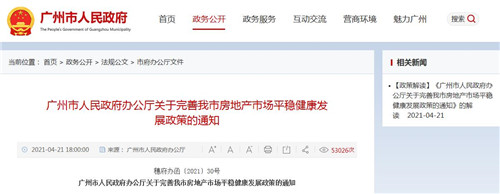 廣州市人民政府辦公廳關(guān)于完善我市房地產(chǎn)市場(chǎng)平穩(wěn)健康發(fā)展政策的通知