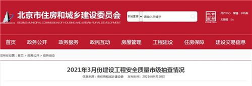 4月20日,北京市住房和城鄉(xiāng)建設(shè)委官方通報(bào)2021年3月份建設(shè)工程安全質(zhì)量市級(jí)抽查情況。