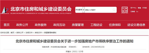 房訊網(wǎng)訊 4月22日,北京市住建委發(fā)布《關(guān)于進(jìn)一步加強(qiáng)房地產(chǎn)市場秩序整治工作的通知》,宣布自即日起至年底,啟動房地產(chǎn)市場秩序?qū)m椪危瑖?yán)厲打擊房地產(chǎn)市場領(lǐng)域違法違規(guī)突出問題。