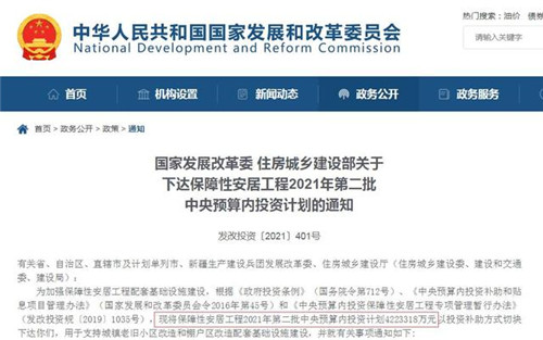 據(jù)國(guó)家發(fā)改委消息,2日,國(guó)家發(fā)改委、住建部印發(fā)關(guān)于下達(dá)保障性安居工程2021年第二批中央預(yù)算內(nèi)投資計(jì)劃的通知,通知稱,將保障性安居工程2021年第二批中央預(yù)算內(nèi)投資計(jì)劃4223318萬(wàn)元,用于支持城鎮(zhèn)老舊小區(qū)改造和棚戶區(qū)改造配套基礎(chǔ)設(shè)施建設(shè)。