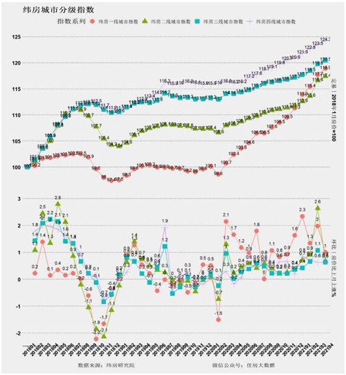 總體看,國家統(tǒng)計(jì)局?jǐn)?shù)據(jù)顯示4月新房漲幅擴(kuò)大。而緯房指數(shù)二手房大數(shù)據(jù)分析顯示,4月各類城市房價(jià)仍以上漲為主,但漲速較3月有所降低。