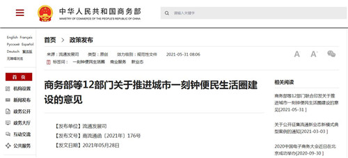 商務(wù)部等12部門關(guān)于推進(jìn)城市一刻鐘便民生活圈建設(shè)的意見