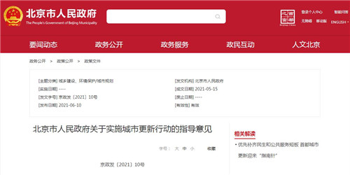 北京市人民政府關(guān)于實(shí)施城市更新行動的指導(dǎo)意見