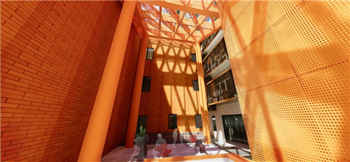 天通科技園的設(shè)計(jì)理念為“共享、科技、活力”,在場景規(guī)劃上引入了公共庭院、三角積木景觀廊道、共享直播間、共享會議室等開放交流空間,并且規(guī)劃了商務(wù)、商業(yè)配套空間,如食堂、健身房、多功能活動廳等。空間的豐富規(guī)劃可滿足企業(yè)在工作、創(chuàng)意交流、活動發(fā)布等不同的場景自由切換。