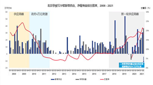 北京甲級(jí)寫字樓新增供應(yīng),凈吸納量和空置率,