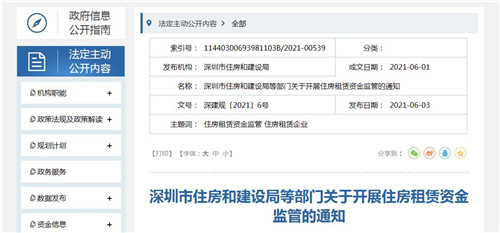 深圳市住房和建設(shè)局等部門關(guān)于開展住房租賃資金監(jiān)管的通知