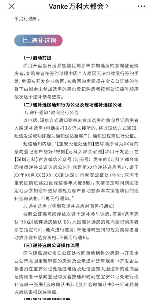 近日,位于深圳寶安區(qū)的萬科大都會公布銷售方案,與此前推出的新盤銷售方案不同,這份方案里新增了“遞補選房”規(guī)則。
