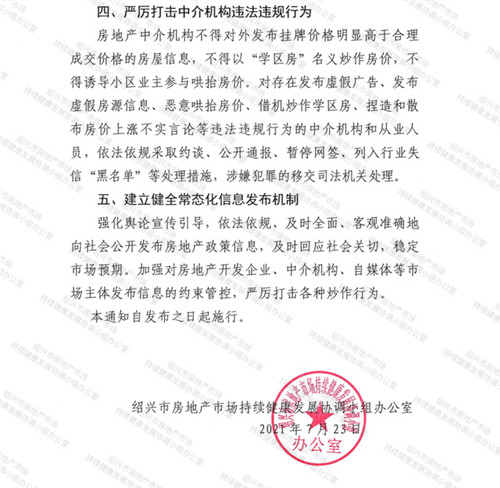 房訊網(wǎng)訊 近日,浙江紹興市出臺(tái)加強(qiáng)二手住房市場(chǎng)監(jiān)管的通知,將加強(qiáng)對(duì)二手住房掛牌價(jià)格的管控,及時(shí)下架掛牌價(jià)格明顯高于所在樓盤合理成交價(jià)格的異常房源。