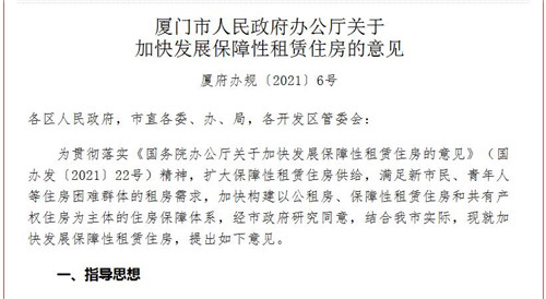 房訊網(wǎng)訊 近日,廈門市人民政府辦公廳發(fā)布關(guān)于加快發(fā)展保障性租賃住房的意見,堅(jiān)持“房子是用來住的、不是用來炒的”定位,以深化住房供給側(cè)結(jié)構(gòu)性改革為主線,擴(kuò)大保障性租賃住房供給,加快構(gòu)建多主體供給、多渠道保障、租購(gòu)并舉住房制度,不斷提升住房保障水平。