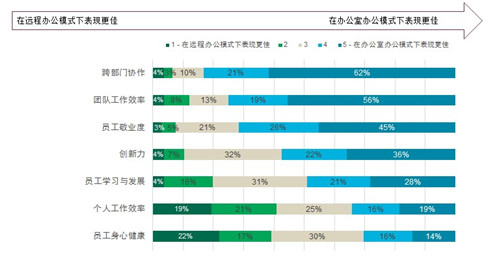 圖表:遠(yuǎn)程辦公與辦公室辦公模式下的表現(xiàn)對比