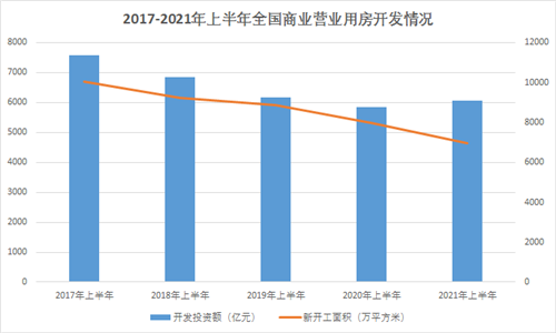 2021年上半年,全國(guó)房地產(chǎn)開(kāi)發(fā)投資穩(wěn)定恢復(fù)。以商業(yè)地產(chǎn)來(lái)看,據(jù)國(guó)家統(tǒng)計(jì)局?jǐn)?shù)據(jù),2021年1-6月,商業(yè)營(yíng)業(yè)用房和辦公樓的開(kāi)發(fā)投資額同比均有小幅增長(zhǎng),其中商業(yè)營(yíng)業(yè)用房為6054億元,同比2020年上半年同比增長(zhǎng)3.5%。彰顯了行業(yè)韌性,也體現(xiàn)了行業(yè)發(fā)展信心有所增強(qiáng)。