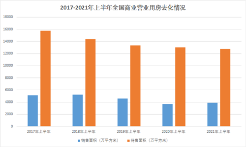 銷(xiāo)售方面,2021年上半年商業(yè)營(yíng)業(yè)用房銷(xiāo)售面積較2020年上半年增長(zhǎng)5.7%,較2019年仍有差距,并沒(méi)有完全恢復(fù)到疫情前的情況。存量上,2021年上半年商業(yè)營(yíng)業(yè)用房待售面積同比下降1.9%,庫(kù)存量相對(duì)減少。