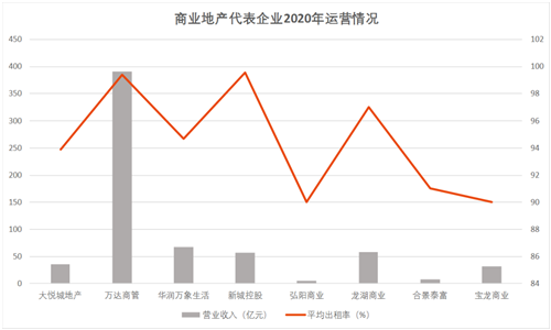 2020年,頭部商業(yè)地產(chǎn)企業(yè)重點(diǎn)項(xiàng)目平均出租率高于90%,整體處于較高水平。截至年底,新城控股出租率全面恢復(fù)至99.54%,同比繼續(xù)提升;商業(yè)總收入85億元,同比增長(zhǎng)近50%。華潤(rùn)置地45個(gè)核心購(gòu)物中心租金收入首次破100億元,同比增長(zhǎng)7.2%;出租率維持94.7%的高位。寶龍實(shí)現(xiàn)租費(fèi)收入32.36億元,同比增長(zhǎng)15.06%;近三年來(lái)新開(kāi)業(yè)的商業(yè)項(xiàng)目的出租率維持90%左右,相較于前期有所提升。