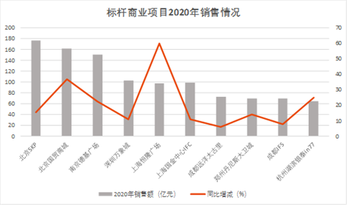 從企業(yè)端來(lái)看,2020年新冠疫情導(dǎo)致全國(guó)商品零售額下降,商業(yè)地產(chǎn)行業(yè)企業(yè)面臨著巨大挑戰(zhàn)。年初疫情肆虐期間居民生產(chǎn)、生活受限,線下消費(fèi)市場(chǎng)受到?jīng)_擊;到二三四季度市場(chǎng)逐步復(fù)蘇,商業(yè)地產(chǎn)百?gòu)?qiáng)代表企業(yè)規(guī)模仍保持增長(zhǎng),但增速有所回落。