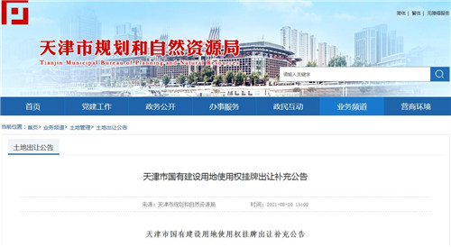 房訊網(wǎng)訊 8月10日,天津市規(guī)劃和自然資源局各區(qū)分局和天津市土地利用事務(wù)中心發(fā)布《天津市國(guó)有建設(shè)用地使用權(quán)掛牌出讓補(bǔ)充公告》,提出61宗國(guó)有建設(shè)用地使用權(quán)公開掛牌出讓的公告時(shí)間延長(zhǎng)至2021年8月31日,掛牌起始時(shí)間統(tǒng)一調(diào)整為2021年9月1日9:00起,掛牌截止時(shí)間統(tǒng)一調(diào)整為2021年9月10日(具體詳見掛牌出讓文件)。競(jìng)買保證金到賬截止時(shí)間及競(jìng)買報(bào)名截止時(shí)間統(tǒng)一調(diào)整為2021年9月8日16:30。