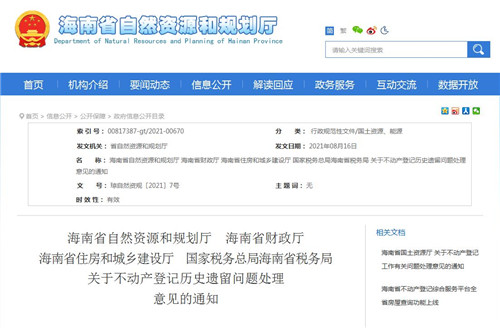 房訊網(wǎng)訊 近日,海南省自然資源和規(guī)劃廳、海南省財(cái)政廳、海南省住房和城鄉(xiāng)建設(shè)廳、國(guó)家稅務(wù)總局海南省稅務(wù)局聯(lián)合下發(fā)《關(guān)于不動(dòng)產(chǎn)登記歷史遺留問(wèn)題處理意見的通知》,對(duì)不動(dòng)產(chǎn)登記基本原則、適用范圍、解決政策和方法等作出明確要求。本通知自發(fā)布之日起實(shí)施,有效期3年。