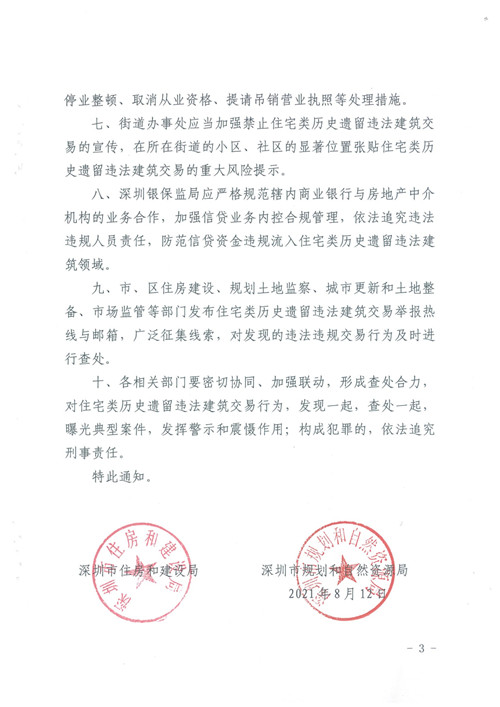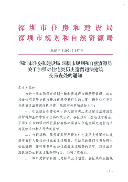 房訊網(wǎng)訊 近日,深圳市住房和建設(shè)局、深圳市規(guī)劃和自然資源局發(fā)布《關(guān)于加強(qiáng)對(duì)住宅類歷史遺留違法建筑交易查處的通知》,要求城市更新項(xiàng)目納入更新單元計(jì)劃前,各區(qū)政府應(yīng)按規(guī)定組織開(kāi)展住宅類歷史遺留違法建筑物業(yè)權(quán)利人核實(shí)工作;對(duì)未開(kāi)展物業(yè)權(quán)利人核實(shí)且尚未確認(rèn)實(shí)施主體的更新項(xiàng)目,由各區(qū)政府在本通知發(fā)布之日起6個(gè)月內(nèi)組織補(bǔ)充開(kāi)展物業(yè)權(quán)利人核實(shí),防范城市更新過(guò)程中回遷房炒作。