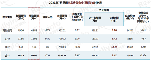 昆明銳理數(shù)據(jù)也顯示,7月昆明商品住宅成交均價(jià)環(huán)14702元/平方米,創(chuàng)過去一年來(lái)新低。其中呈貢、官南、滇池跌幅最大,其他片區(qū)降幅不明顯。庫(kù)存量持續(xù)走高,商品房住宅庫(kù)存從2017年的約476.22萬(wàn)平方米,增加至約962.01萬(wàn)平方米,庫(kù)存翻倍,去化周期也由6.87個(gè)月增至13.92個(gè)月。