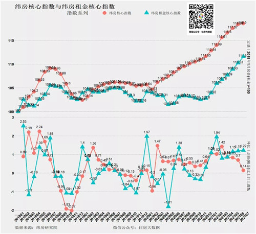 反映全國(guó)24個(gè)核心城市綜合房?jī)r(jià)漲跌的緯房核心指數(shù)監(jiān)測(cè)顯示,2021年7月,核心城市房?jī)r(jià)環(huán)比上漲0.14%,漲速比6月下降0.56個(gè)百分點(diǎn)。房?jī)r(jià)總體趨于平穩(wěn)。與2018年1月相比,核心城市綜合房?jī)r(jià)上漲了18.5%。