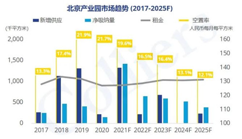 由于市場(chǎng)需求的暴漲,上半年北京產(chǎn)業(yè)園市場(chǎng)整體空置率從2020年年底的21.7%,半年環(huán)比下降4.2個(gè)百分點(diǎn)至17.5%。租金在2021年上半年市場(chǎng)基本維持穩(wěn)定,市場(chǎng)平均租金維持在128元每平方米每月。