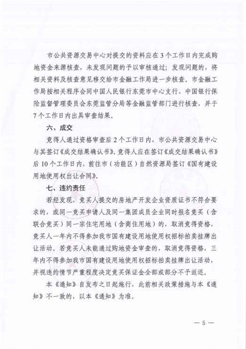 房訊網(wǎng)訊 9月9日,東莞市自然資源局、東莞市住建局等五部門(mén)起草并發(fā)布了《關(guān)于進(jìn)一步嚴(yán)格住宅用地競(jìng)買(mǎi)有關(guān)事項(xiàng)的通知》,通過(guò)嚴(yán)格購(gòu)地主體資格審查、強(qiáng)化購(gòu)地資金來(lái)源審查等措施,健全東莞住宅用地市場(chǎng)準(zhǔn)入機(jī)制、建立購(gòu)地資金審查制度,進(jìn)一步維護(hù)東莞土地交易市場(chǎng)秩序。