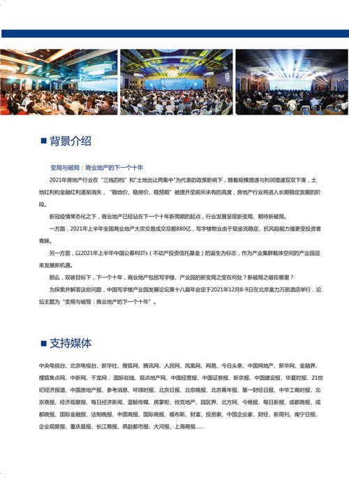 房訊網(wǎng)訊 2021年12月8-9日,中國(guó)寫字樓產(chǎn)業(yè)園發(fā)展論壇第十八屆年會(huì)將在北京富力萬(wàn)麗酒店盛大舉行,主題為“變局與破局:商業(yè)地產(chǎn)的下一個(gè)十年”。