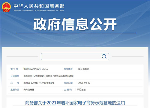 2021年增補(bǔ)國家電子商務(wù)示范基地名單(共16家)