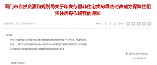 房訊網(wǎng)訊 9月3日,廈門市自然資源和規(guī)劃局官網(wǎng)發(fā)布《關(guān)于印發(fā)存量非住宅類房屋臨時改建為保障性租賃住房操作規(guī)程的通知》,同時發(fā)布了《存量非住宅類房屋臨時改建為保障性租賃住房審查技術(shù)標準》。