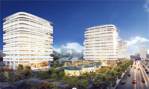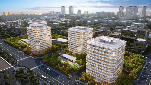 FLC星地中心總體量15萬平方米,其中包括有四棟寫字樓,單棟面積約2.3-2.5萬平方米。比起一般棱角分明線條鮮明的寫字樓,星地中心的外形更趨向律動(dòng)和柔和,外圓內(nèi)方的形狀靈感源自于中國傳統(tǒng)文化中“天圓地方”的理念,不對(duì)稱出現(xiàn)的圓弧轉(zhuǎn)角處理猶如在白色緞帶的包裹中盤旋向上,增加了建筑本身的靈動(dòng)和神秘感。
