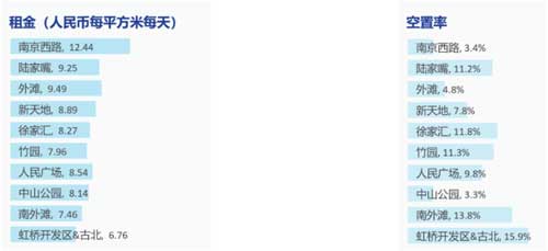 核心區(qū)子市場租金和空置率表現(xiàn)