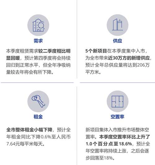 上海三季度繼續(xù)出臺(tái)多項(xiàng)“促發(fā)展”、“做增量”的穩(wěn)增長政策措施,市場預(yù)期和信心不斷改善,經(jīng)濟(jì)回升保持向好勢頭。我們預(yù)計(jì)第四季度辦公樓市場將持續(xù)回歸到正常水平。