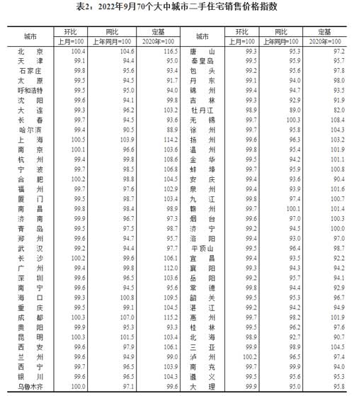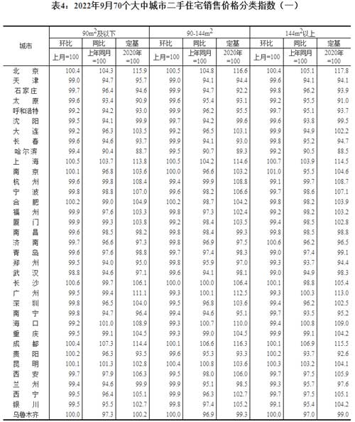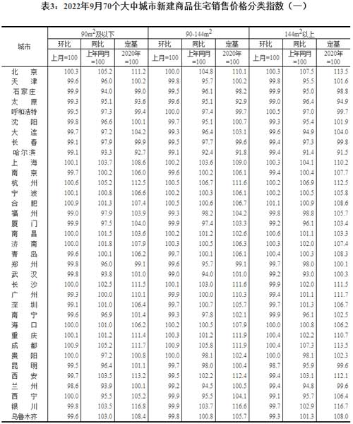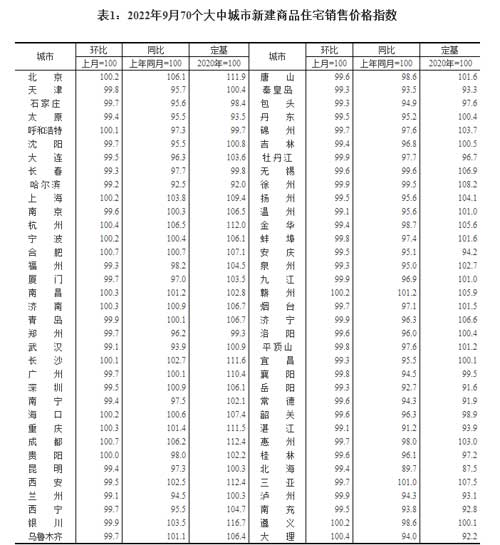 統(tǒng)計局:9月份70個大中城市商品住宅銷售價格變動情況