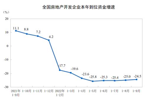 1—9月份,房地產(chǎn)開發(fā)企業(yè)到位資金114298億元,同比下降24.5%。其中,國內(nèi)貸款13661億元,下降27.2%;利用外資61億元,增長2.7%;自籌資金40568億元,下降14.1%;定金及預(yù)收款37348億元,下降34.1%;個人按揭貸款18397億元,下降23.7%。