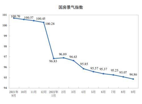 9月份,房地產(chǎn)開發(fā)景氣指數(shù)(簡稱“國房景氣指數(shù)”)為94.86。