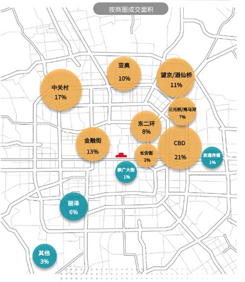 就商圈而言,CBD在第三季度達(dá)成金融行業(yè)多元化集團(tuán)等租賃成交令其成交面積占到全市總量的21%,居各商圈首位。