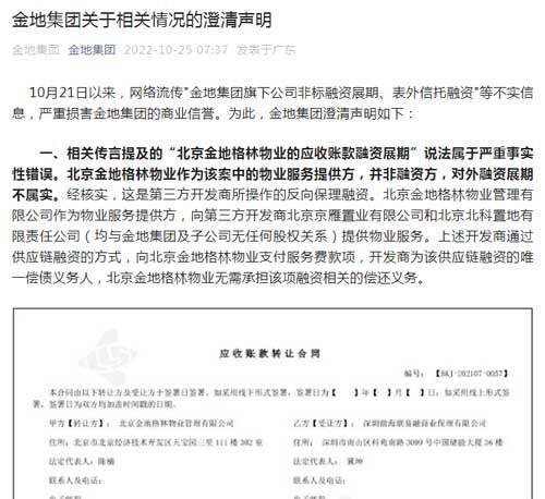 金地集團(tuán)發(fā)澄清公告:“應(yīng)收賬款融資展期”不屬實(shí)
