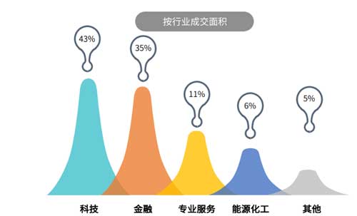 其中,科技行業(yè)成交面積占雖比往期數(shù)據(jù)有所降低,但仍居于首位,錄得43%。