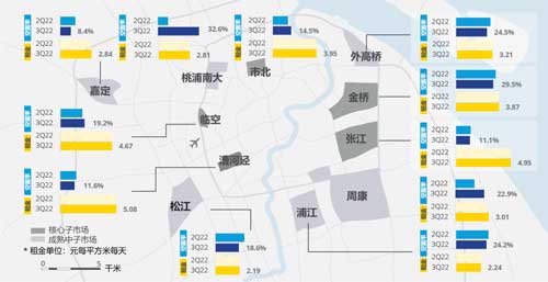 2022年第三季度上海產(chǎn)業(yè)園區(qū)市場受二季度封控的后續(xù)影響,部分企業(yè)通過延緩擴租或縮減辦公面積等措施控本增效。本季度錄得整體產(chǎn)業(yè)園區(qū)的凈吸納量有所下降、空置率略微抬升,但平均租金仍保持穩(wěn)中微升,預(yù)期在需求回暖之前租金仍將繼續(xù)橫盤。高力國際對上海產(chǎn)業(yè)園區(qū)市場的走勢保持樂觀展望。