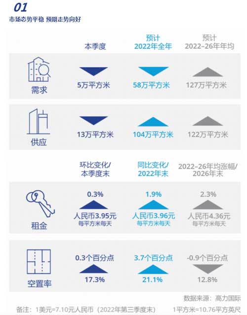上海市穩(wěn)經(jīng)濟政策已初見成效,經(jīng)濟回升勢頭好于預(yù)期。長期而言,上海市大力推進科技創(chuàng)新、加快產(chǎn)業(yè)新舊動能轉(zhuǎn)換,以達成全球影響力的科技創(chuàng)新中心的使命。因此,高力國際對上海產(chǎn)業(yè)園區(qū)市場的走勢保持樂觀展望。