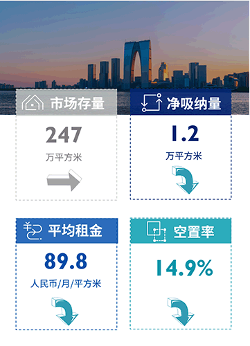 由于新增供應(yīng)于本季度交付入市,全市甲級(jí)寫(xiě)字樓市場(chǎng)空置率環(huán)比上升至23.4%;為提高競(jìng)爭(zhēng)力,部分項(xiàng)目業(yè)主做出更多讓步以吸引優(yōu)質(zhì)租戶,使得南京甲級(jí)寫(xiě)字樓市場(chǎng)平均租金環(huán)比小幅下調(diào);
