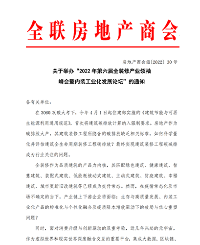 2022第六屆全裝修產(chǎn)業(yè)領袖峰會暨內裝工業(yè)化發(fā)展論壇