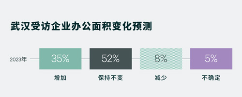 租賃價(jià)格持續(xù)下跌使武漢受訪企業(yè)升級(jí)擴(kuò)租意愿強(qiáng)烈,有39%的武漢受訪企業(yè)表示未來(lái)三年有升級(jí)或擴(kuò)租計(jì)劃,位列第一。僅有8%的受訪企業(yè)在未來(lái)三年中預(yù)期縮減辦公面積。
