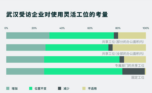 本次調(diào)查的結(jié)果顯示,28%的受訪企業(yè)將增加全部辦公區(qū)域的共享工位數(shù)量,31%的企業(yè)將增加部分辦公區(qū)域共享工位數(shù)量。