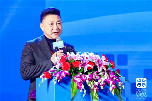 △全聯(lián)房地產(chǎn)商會(huì)寫字樓分會(huì)副會(huì)長、米蘭之窗董事長馬俊清先生為年會(huì)發(fā)言致辭