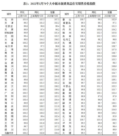 房訊網(wǎng)訊 國家統(tǒng)計局今日發(fā)布2022年1月份70個大中城市商品住宅銷售價格變動情況。