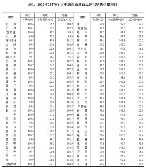房訊網(wǎng)訊 3月16日,國家統(tǒng)計(jì)局發(fā)布2022年2月70個(gè)大中城市商品住宅銷售價(jià)格變動情況,國家統(tǒng)計(jì)局城市司首席統(tǒng)計(jì)師繩國慶解讀表示,2月份,70個(gè)大中城市中,一線城市新建商品住宅和二手住宅銷售價(jià)格環(huán)比上漲,二三線城市環(huán)比持平或下降;一二線城市商品住宅銷售價(jià)格同比漲幅回落或持平,三線城市同比下降。
