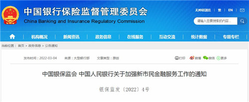 中國銀保監(jiān)會 中國人民銀行關(guān)于加強(qiáng)新市民金融服務(wù)工作的通知