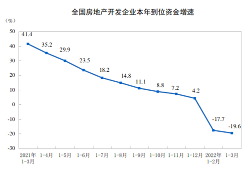 1—3月份,房地產(chǎn)開發(fā)企業(yè)到位資金38159億元,同比下降19.6%。其中,國內(nèi)貸款5525億元,下降23.5%;利用外資10億元,下降7.8%;自籌資金12395億元,下降4.8%;定金及預(yù)收款12252億元,下降31.0%;個人按揭貸款6369億元,下降18.8%。